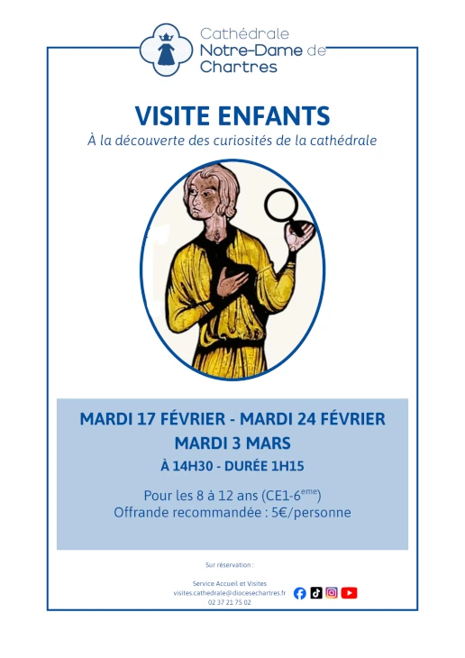De 14h30 à 15h45 sur inscription auprès du Service Accueil et Visites Notre-Dame (avec la possibilité d’accueillir les enfants le jour même)