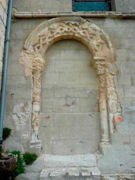 « construite sur plusieurs époques, remaniée, restaurée, soit en raison de difficultés financières soit pour agrandir ou réparer. L’église présente encore des caractéristiques romanes, comme des modillons de corniches dont les motifs ont été effacés par le temps. Un portail latéral agrémenté de motifs géométriques et de deux colonnes à chapiteaux ou encore la fenêtre aujourd’hui murée de la façade Nord Est décorée d’un bandeau mouluré et de colonnes ».