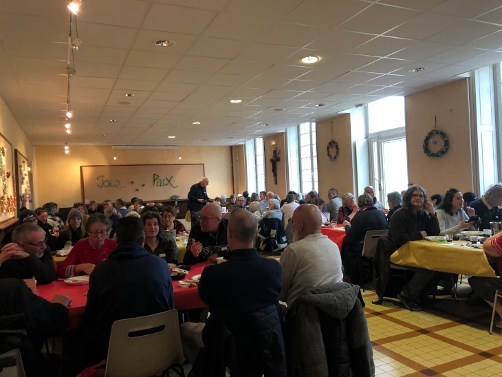 Puis les convives se répartissent librement par tables de huit pour vivre ce moment qui rompt la solitude et permet de faire des connaissances.
